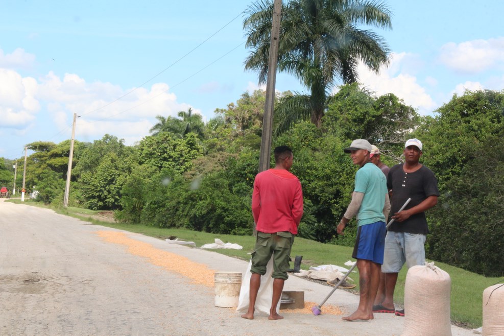 Местные жители иногда занимают часть полосы для сушки сельскохозяйственных культур. Самое удивительное, что мы видели это и на автомагистралях: