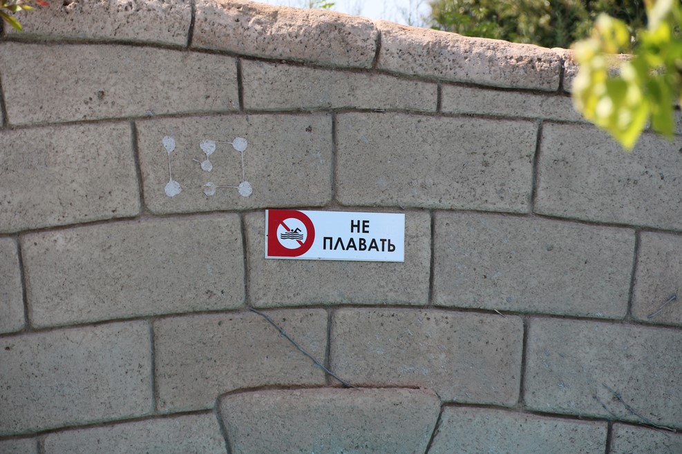 И даже внутри парка, поверх всех табличек на греческом, наклеены надписи на русском: