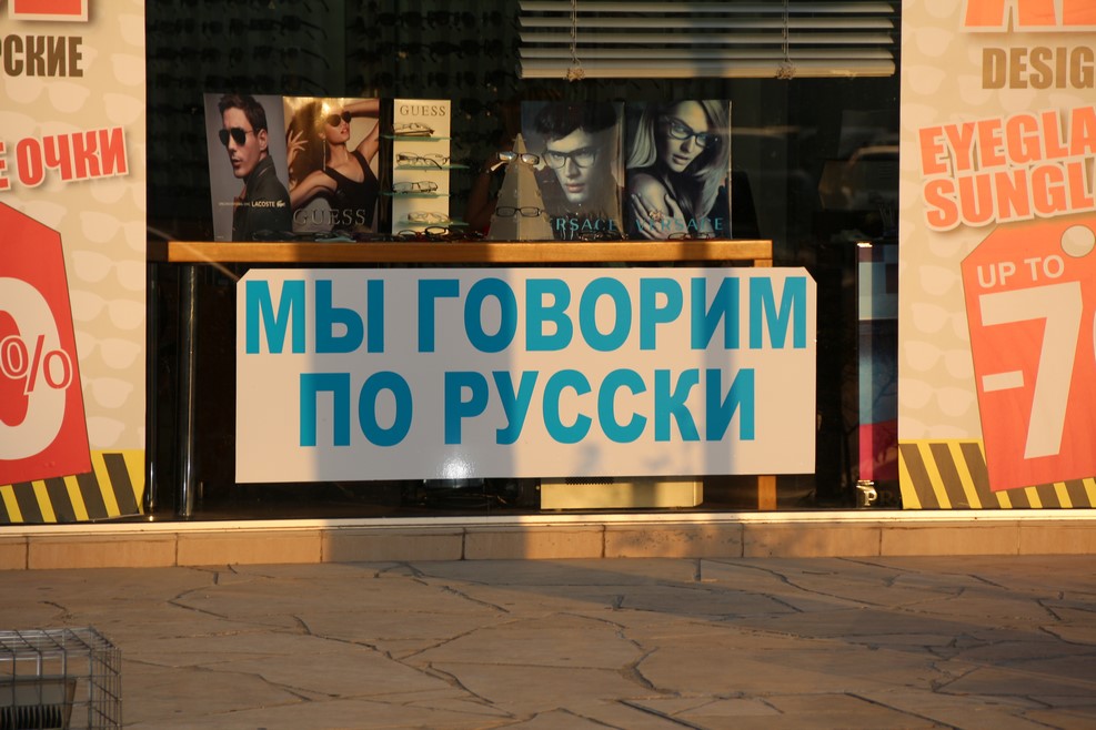 Русского языка на острове очень много. Если вы говорите только по-русски, то вас с большой долей вероятности поймут. Кроме русских тут находятся большие общины греков, армян и грузин говорящих на нашем родном языке. Греческий язык можно услышать очень редко, в основном русский и английский.
