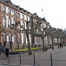 Страсбург знаменит тем, что там есть суд по правам человека, в который, как говорят, большинство жалоб поступает от граждан России. Сам суд представляет собой довольно старое здание с большим стеклянным полукруглым холлом. Рядом с судом развешено полсотни флагов. Мы остановились в старой части города и погуляли:
