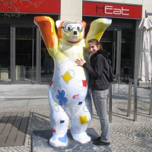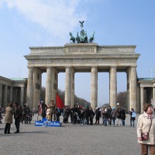 И потом двинули к Бранденбургским воротам когда то отделяющим западный Берлин от восточного. Около ворот вместе с попрошайками, которые могут попросить милостыню на любом языке мира, есть так же специально обученные люди, развлекающие граждан: