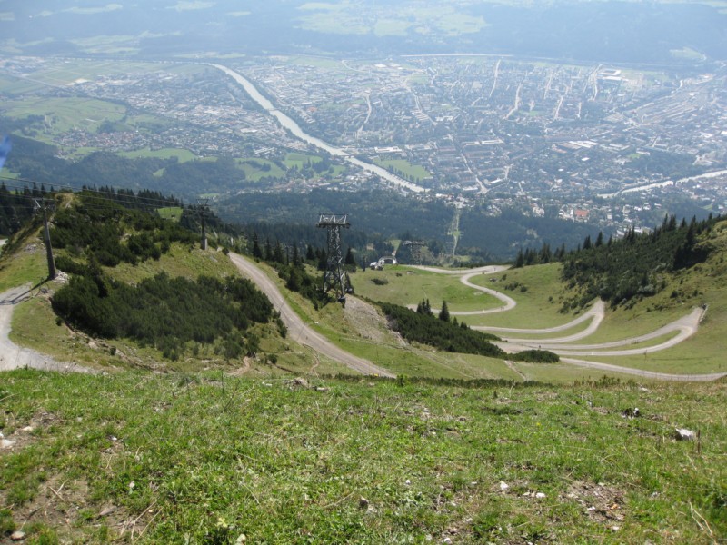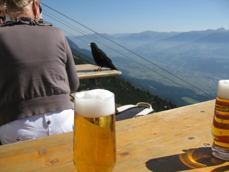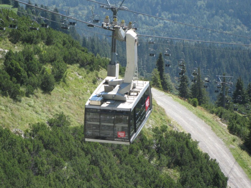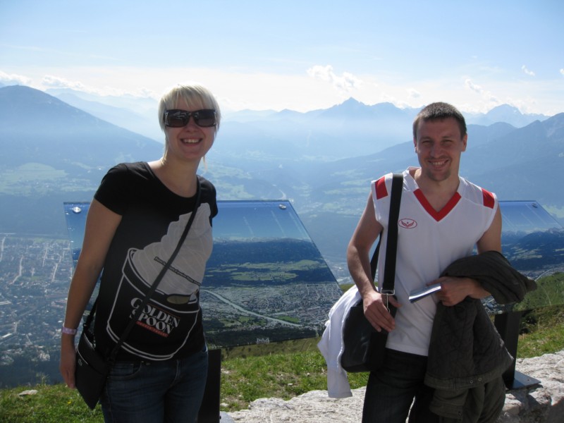 В Инсбруке есть способ подняться на высоту 2200 метров. Стоимость подъема и спуска стоит 54 евро на двоих. Сначала примерно до половины везет фуникулер: