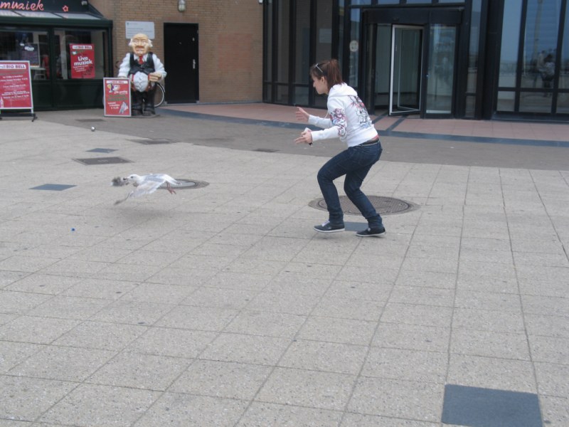 Чайки откормленые и жирные, и Kira сразу же принялась сгонять с них лишний жир: