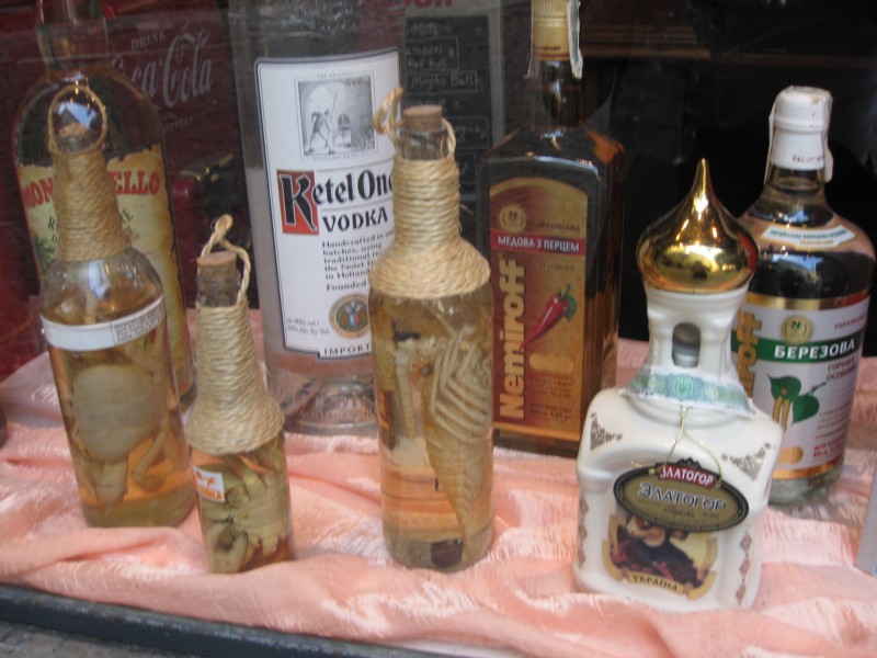 В одном из магазинов продавали алкогольные напитки из крабов, кальмаров и украинское пойло: