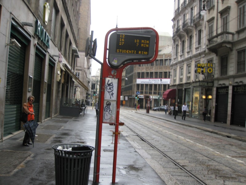 Интервал между автобусами показан на каждой остановке и обновляется динамически по беспроводной связи: