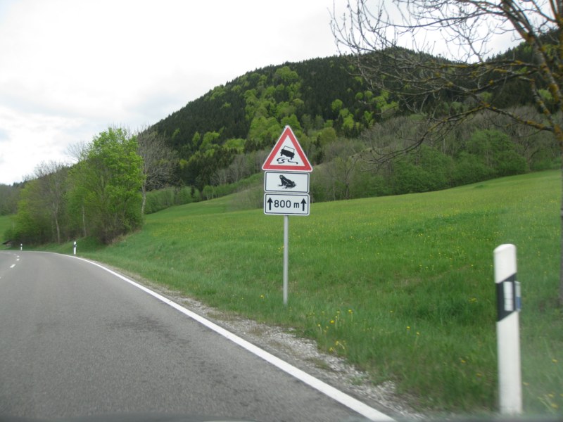По пути попадается знак «Осторожно, лягушки»