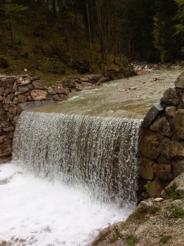 На замок можно любоваться с мостика, а под ногами водопад: