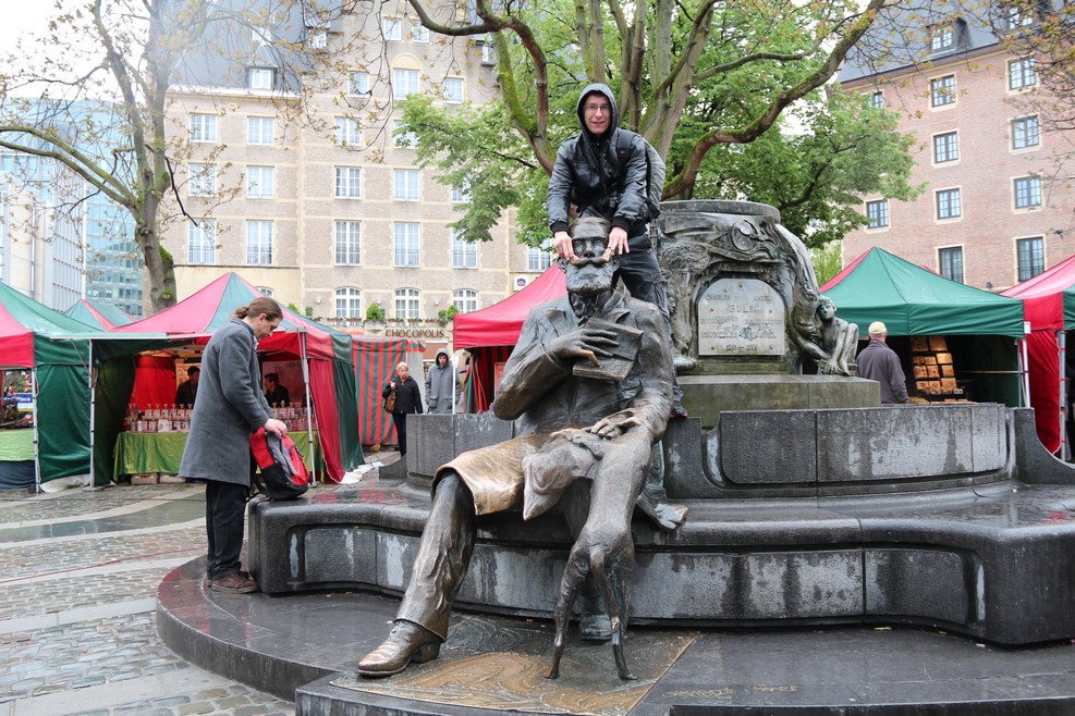Пришли к писающему мальчику. Мальчик меня разочаровал. Вместо полноценного писюна торчит трубка, которая почему то идет через задний проход: