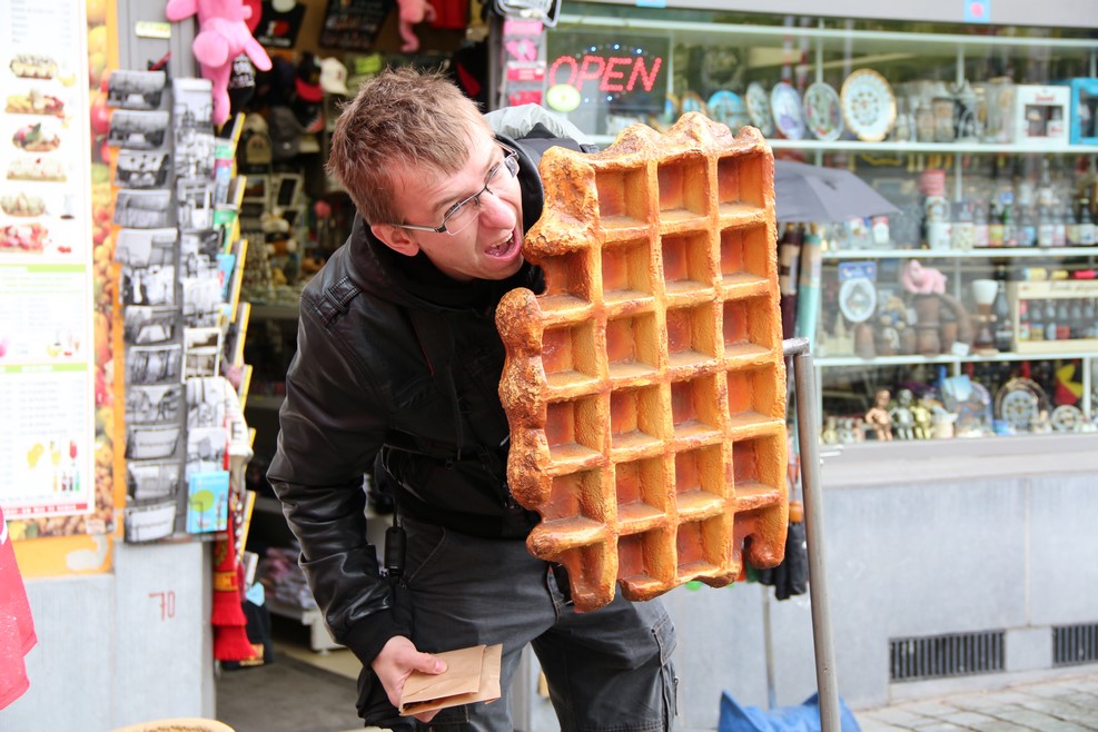 Ем бельгийские вафельки с шоколадом и клубникой. М-м-м, объедение: