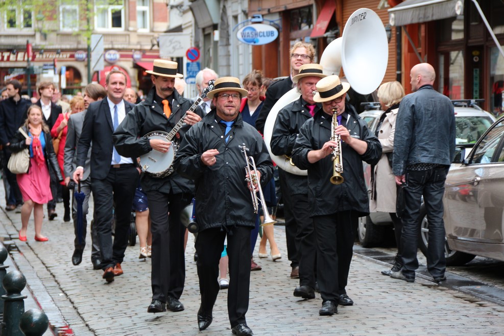 Мы были в центре в субботу. Самое время для свадеб. На машине подъехали две невесты: