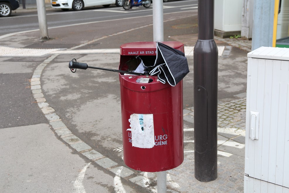 Так же как и в Англии после ветра в мусорках валяется множество сломанных зонтиков: