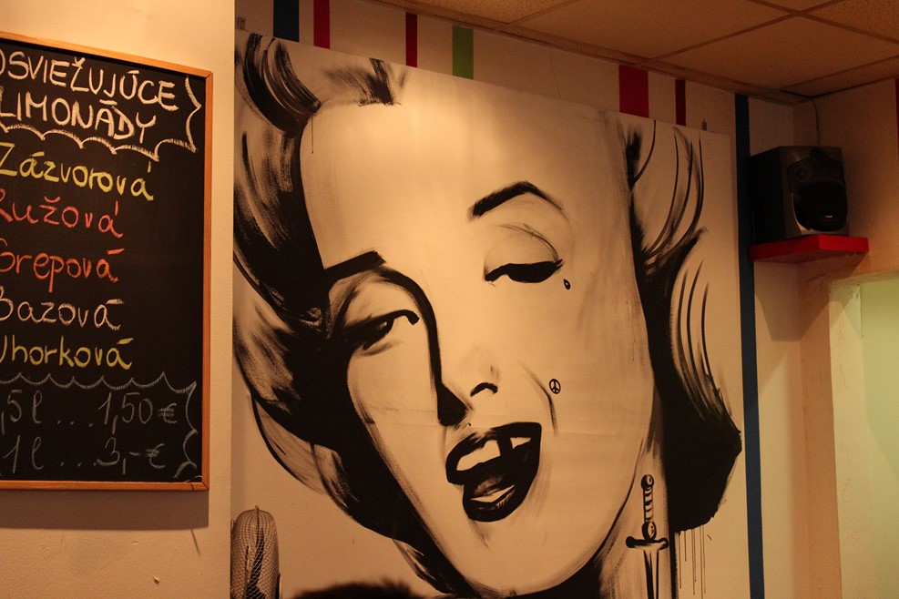 Зашли в первое попавшееся кафе, где на стене красовалась беззубая Мэрилин Монро: