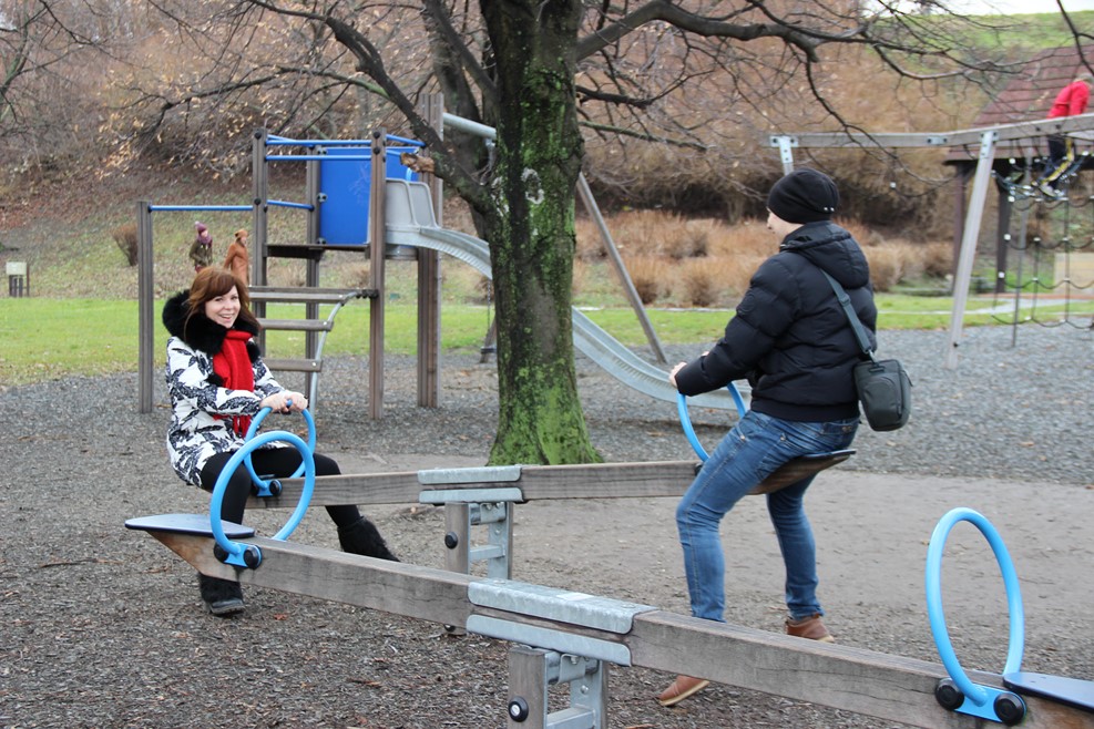 Осмотр был завершен и мы уже собирались спускаться с возвышенности, на которой стоял замок, вниз. Но увидев качели, просто так Джеттаводы мимо пройти не смогли: