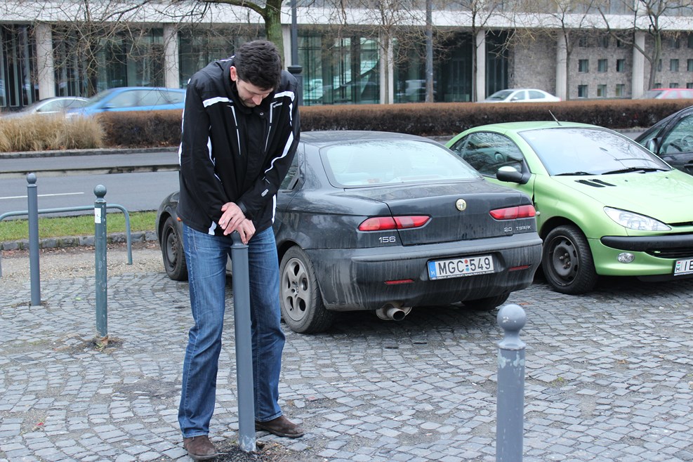 Проголодавшись, было решено съездить в какое-нибудь необычное место и пообедать. Мы вернулись на парковку и каково было наше удивление когда мы поняли, что выехать нет никакой возможности — проезды меду рядами были закрыты нерадивыми венгерскими автолюбителями. Пометавшись по парковке стало окончательно ясно — выхода нет, остается ждать. Но не для Сергея. Легким движением руки он выкорчевал один из столбиков! Мы выехали, вставил обратно и мы рванули… прям через площадь, нарушая все мыслимые и немыслимые правила