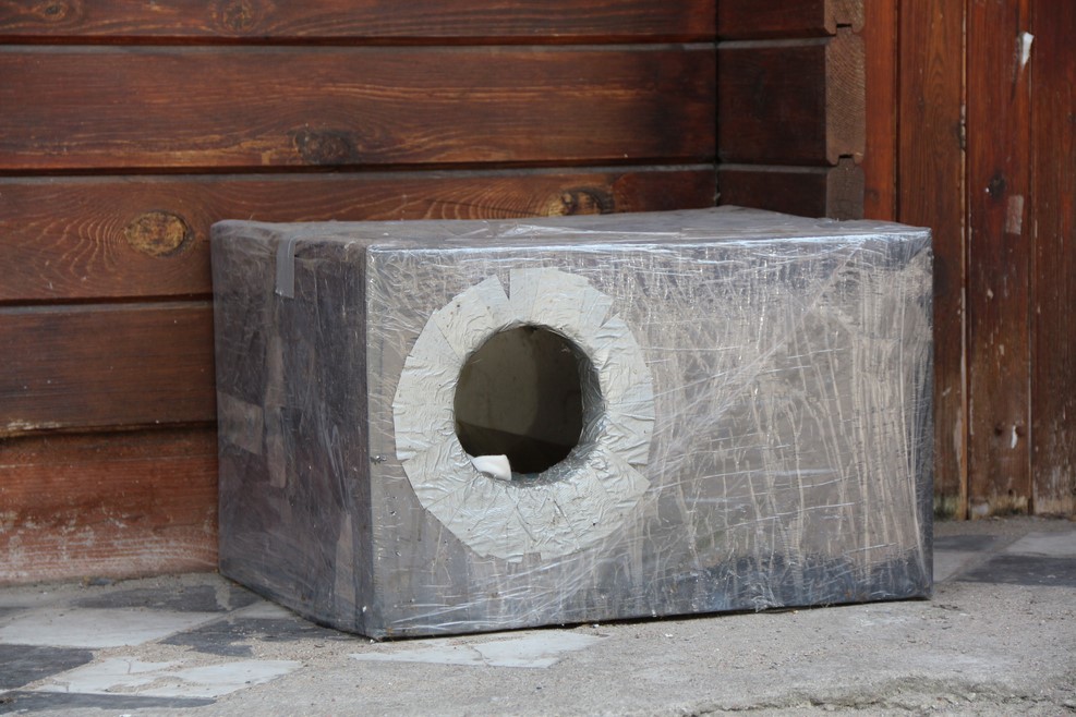 Прямо на улице домик для кошек: