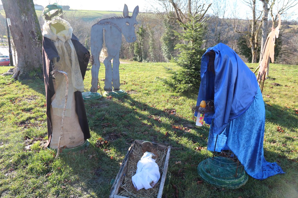 [gmap mapid=2]!1m18!1m12!1m3!1d345000.7812105845!2d4.2391753111908494!3d47.50318616944959!2m3!1f0!2f0!3f0!3m2!1i1024!2i768!4f13.1!3m3!1m2!1s0x47ed8d936600e043%3A0x409ce34b3145650!2zMjExNTAg0KTQu9Cw0LLQuNC90YzQuC3QodGO0YAt0J7Qt9GA0LXQvSwg0KTRgNCw0L3RhtC40Y8!5e0!3m2!1sru!2sru!4v1484814051766[/gmap]Тут самая странная сценка рождения Христа. Ослик, похожий на Иа из мультика про Винни-Пуха, почему-то обижено отвернулся от всех, а в руках у персонажа справа находится современная бутылка для кормления малыша. Сам малыш выглядит тоже очень странно и больше похож на кусок материи, который запутался в проволоке: