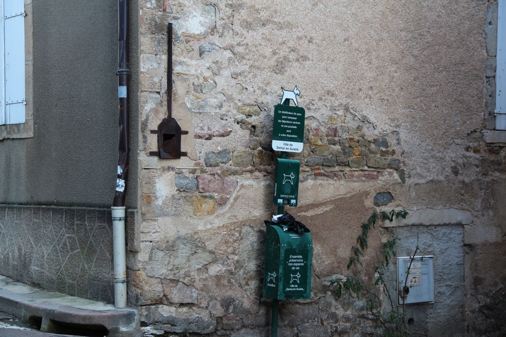 Собак в городе очень много, пакетики для них (левее, под ржавыми железяками, напоминающими лопату, проходит проводка):