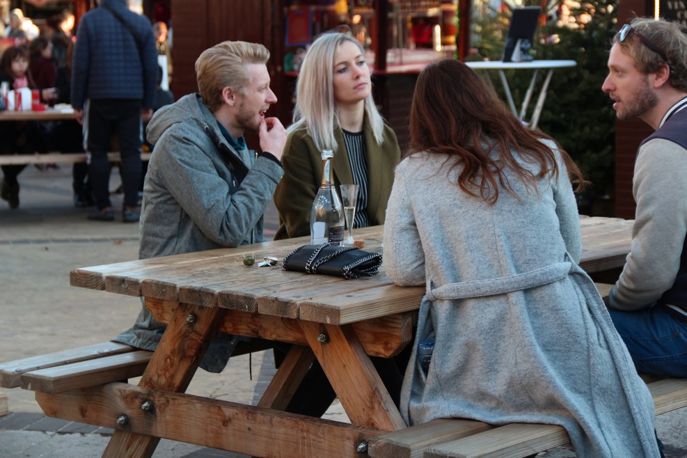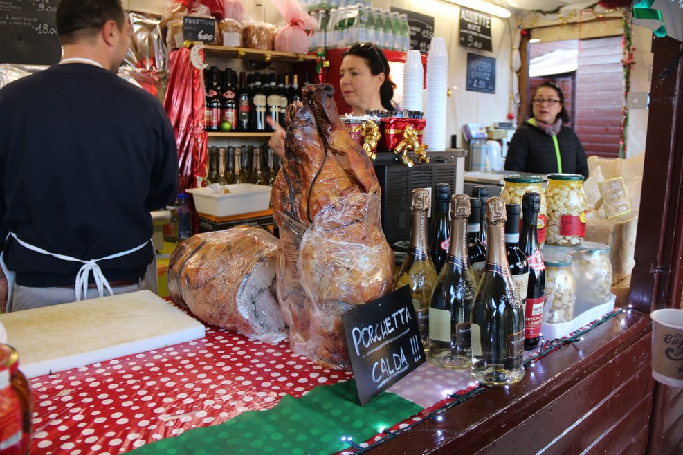Внутри располагалась ярмарка. Часть прилавков торговала едой, но особенной популярностью в этот день пользовалось шампанское: