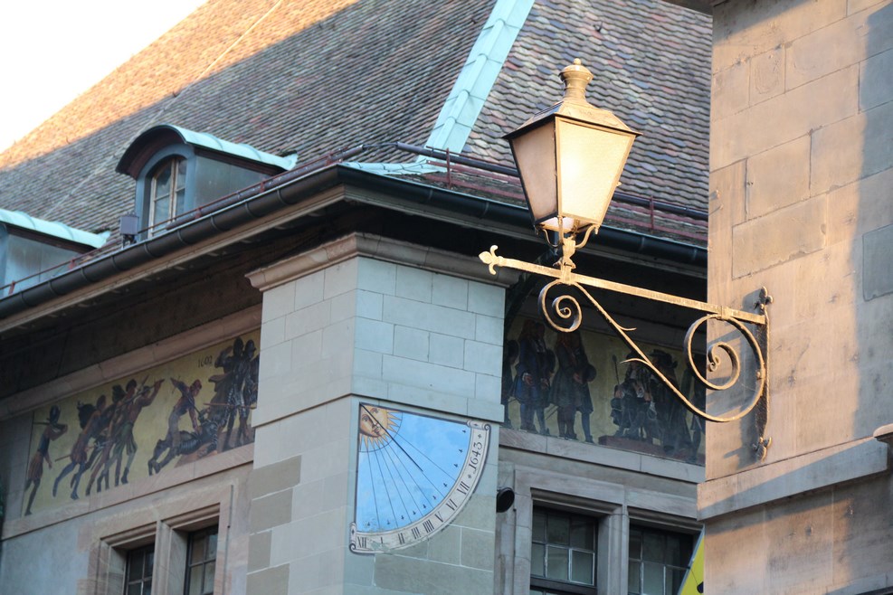 В центре, на тесных улочках, развешено сверхбольшое количество швейцарских флагов: