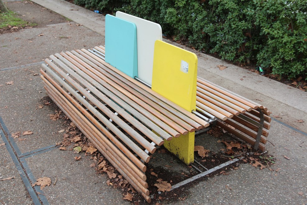 Лавочки в парке все не похожие друг на друга: