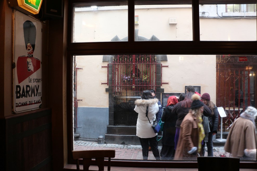 С площади для вселенского равновесия мы пошли смотреть еще и писающую девочку. Раскидывать туристов в надежде подобраться к девочке поближе мы не стали, а просто сели в пивнуху напротив из которой открывается отличный вид на скульптуру: