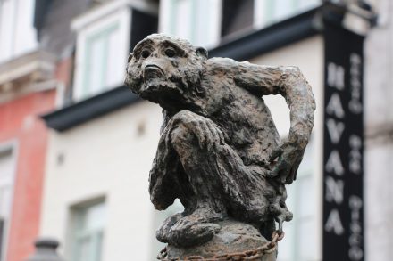 На всех прилегающих улицах тема писающего мальчика нещадно эксплуатируется: