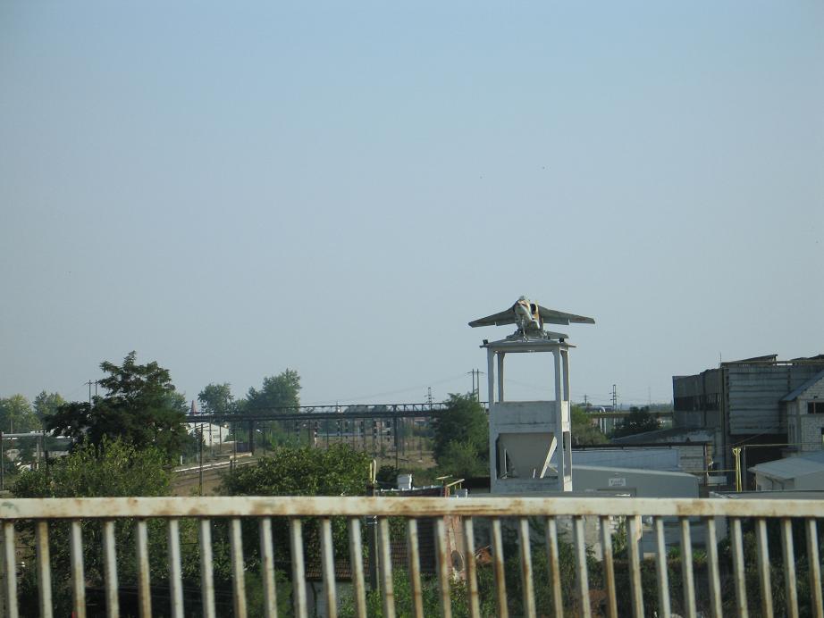 Румынские пограничники никак не хотели принимать нас обратно. Они объяснили, что по правилам они должны отправить нас обратно в Болгарию (на другой конец страны). Там мы должны въехать в Болгарию, и вернуться назад в Румынию, проблема была лишь в том, что в Болгарию нас бы не пустили, потому что виза у нас была одноразовая. Попугав немного, пограничники сказали, что готовы закрыть глаза на правила за скромную сумму в 10 евро. Меня такой вариант устраивал больше, поэтому пришлось расстаться с заветной бумажкой. Выйдя на улицу, около будки пограничников нашел надпись примерно такого содержания: «Тут не терпят коррупции» smile . Сразу за границей нас первый раз остановили румынские полицейские в масках и с автоматами в руках. Попросили тех.талон и открыть багажник, что то записали и отпустили восвояси. Едем дальше, а дальше по списку у нас город Тимишоара. Пока ехал, обнаружил страсть к самолетам и у румын: