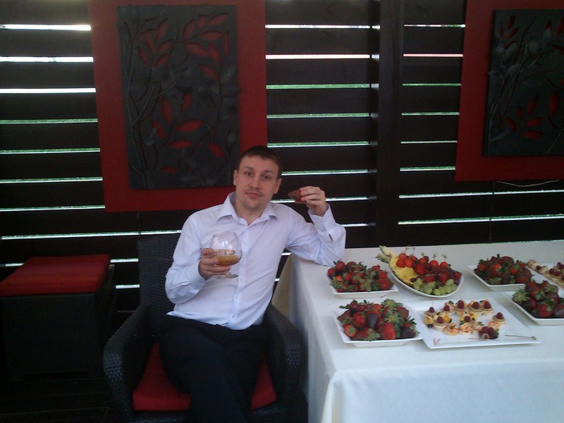 А так Леха выглядел спереди, вроде все прилично. Фотография сделана на день рождения в ресторане «Телега» во Владимире: