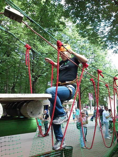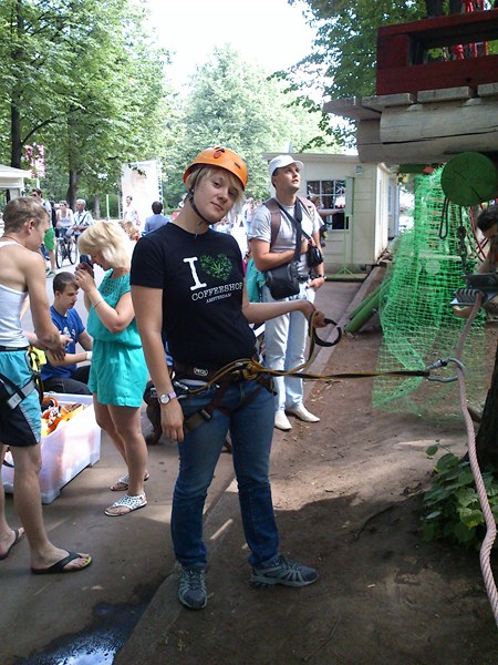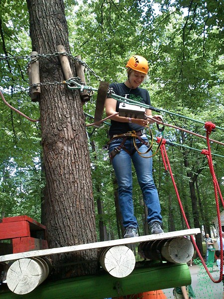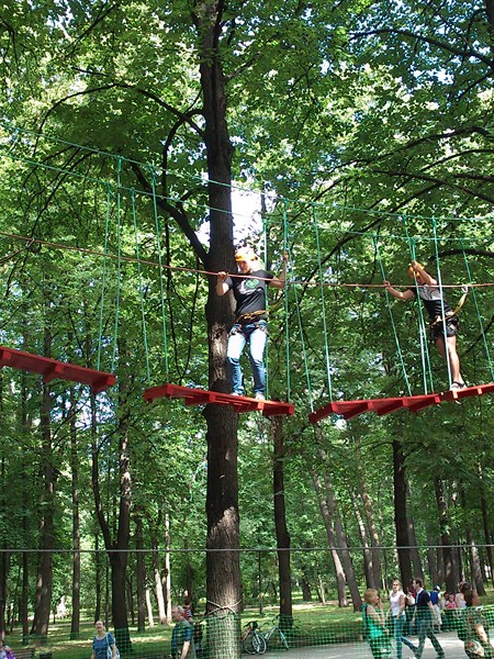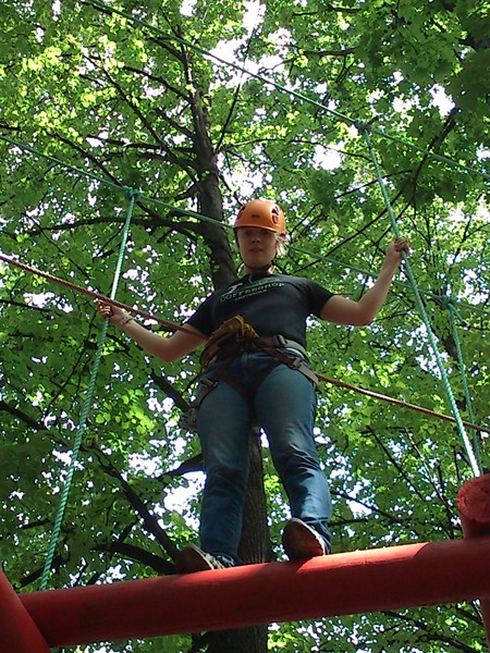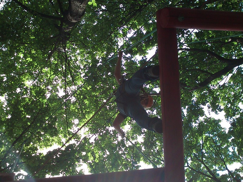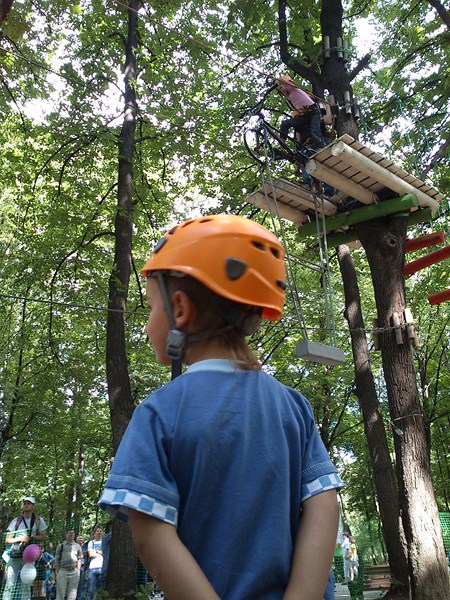 Далее Лето. Мы с Олькой в парке в сокольниках. Она решила пройти по полосе препятствий: