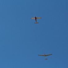 В небе трос разъединяется, и самолет летит своей дорогой, а планер своей. Приземление самолета: