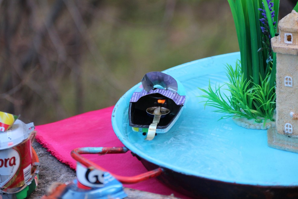 Странное устройство в виде кораблика. Оно плавает по кругу, используя энергию горящей свечки внутри, как это может работать, ума не приложу: