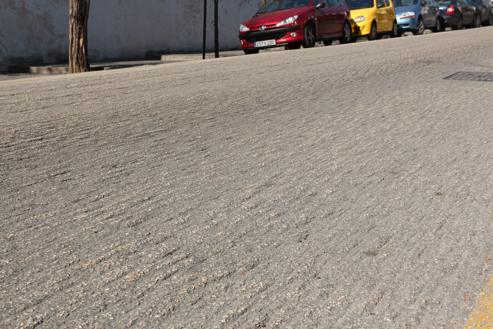 Резкий подъем в гору покрыт шершавым асфальтом (предположительно для лучшего сцепления колес автомобиля с дорогой):