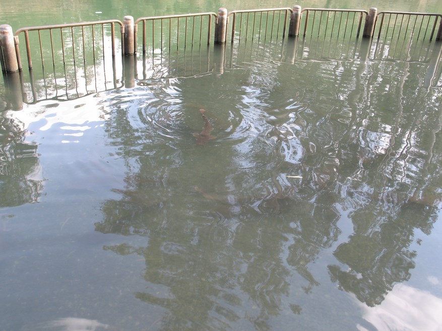 В реке плещутся огромные рыбины: