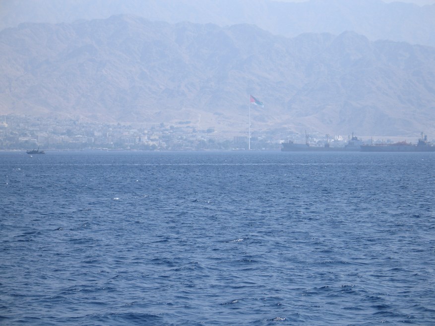 На другом берегу виден огромный Иорданский флаг, там уже другая страна: