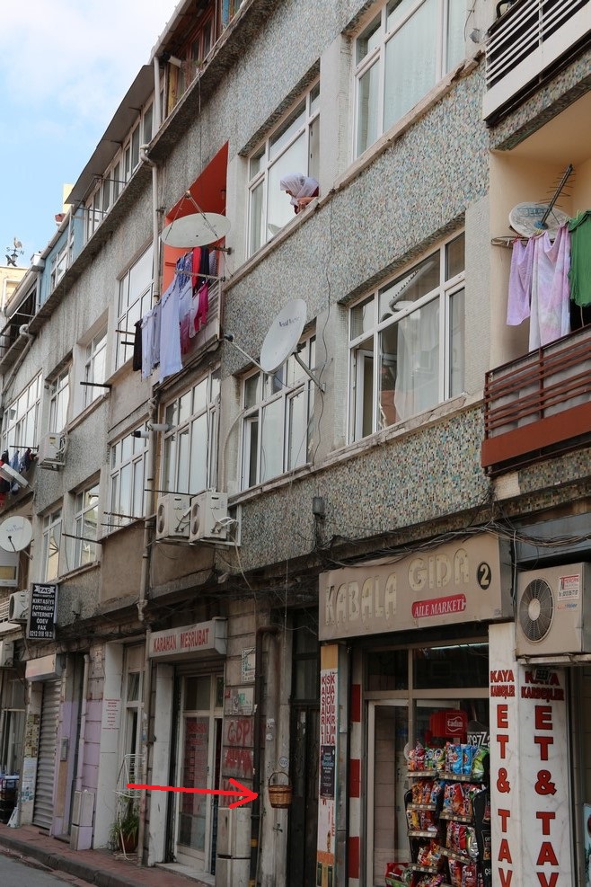 Бабушка, чтобы не спускаться, опустила пустое ведерко на улицу. Когда туда что-то положат, ведерко можно будет поднять: