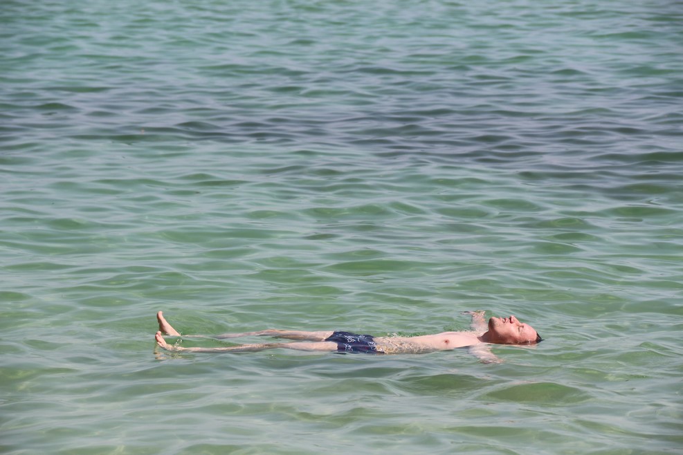 Вода настолько соленая, что без проблем держала мена на поверхности: