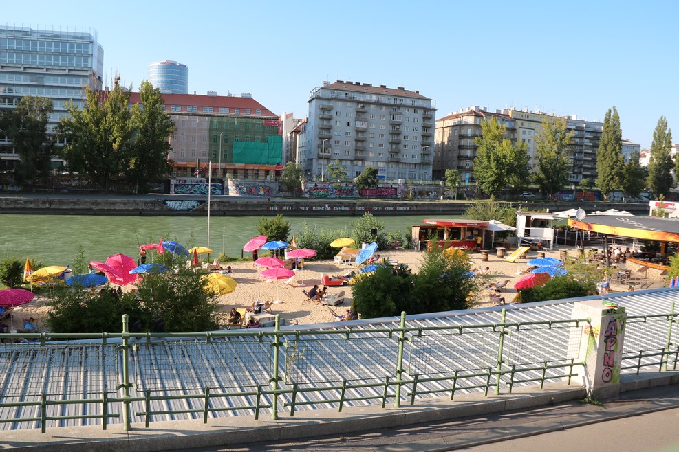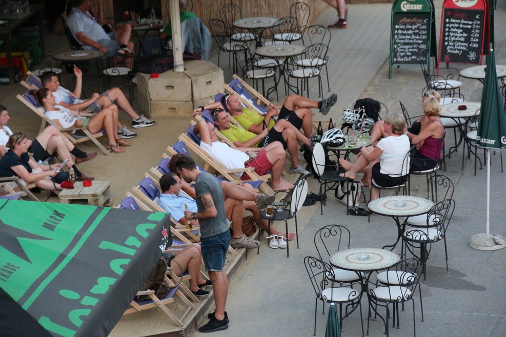 Вдоль побережья попадаются небольшие кафешки. Люди сидят рядом с ними на насыпном песке и созерцают неторопливую водную гладь реки: