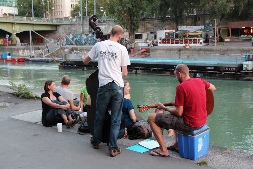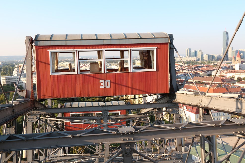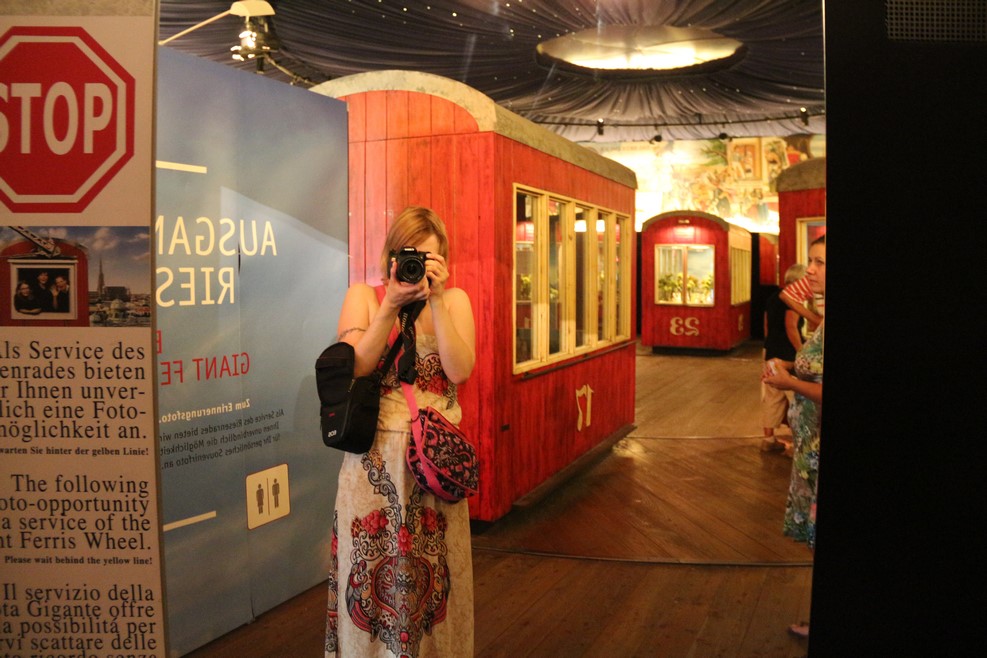 В парке есть старое венское колесо обозрения (сооружённое в 1896—1897 годах). Олька на входе к колесу: