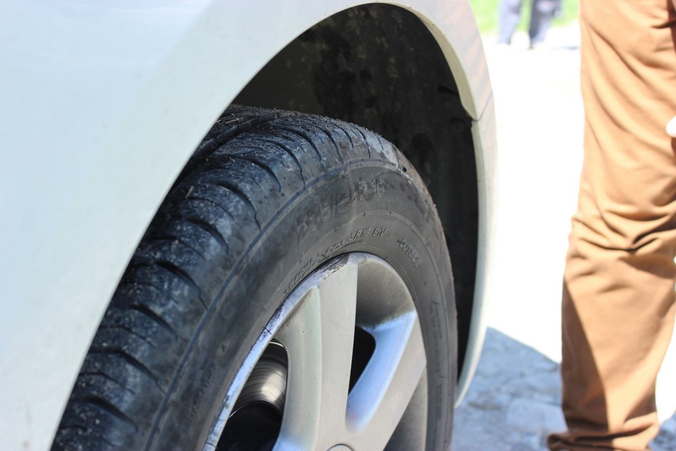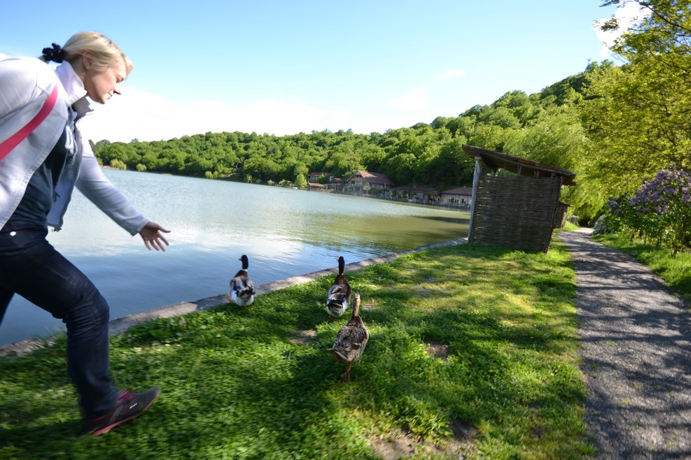 Неподалеку нас остановил охранник. К озеру просто так не проедешь, потому что вокруг озера расположен гостиничный комплекс, и по существу озеро могут посмотреть только посетители отеля. Благодаря кавказскому гостеприимству нас все-таки пропустили в виде исключения. К самому озеру ведет небольшая узкая асфальтная дорожка: