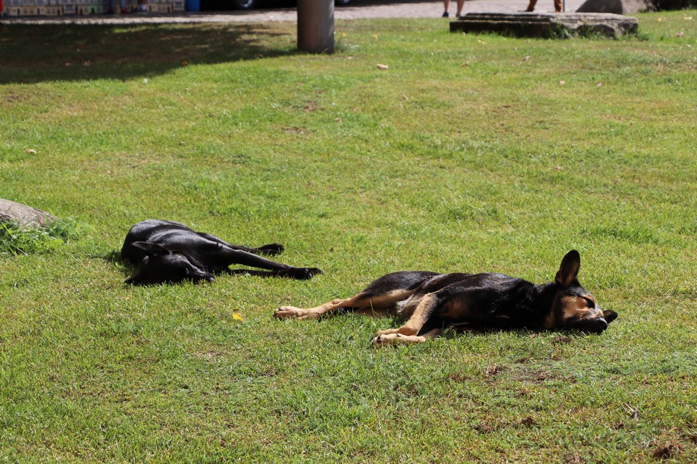 Собакевичи греются на травке: