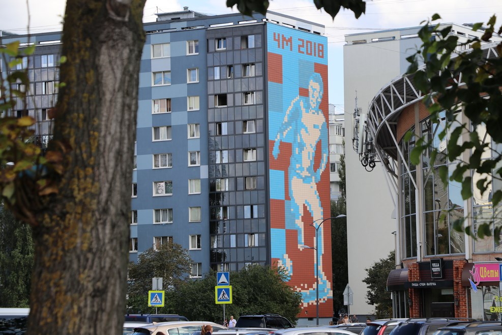 Тема чемпионата мира по футболу в оформлении города: