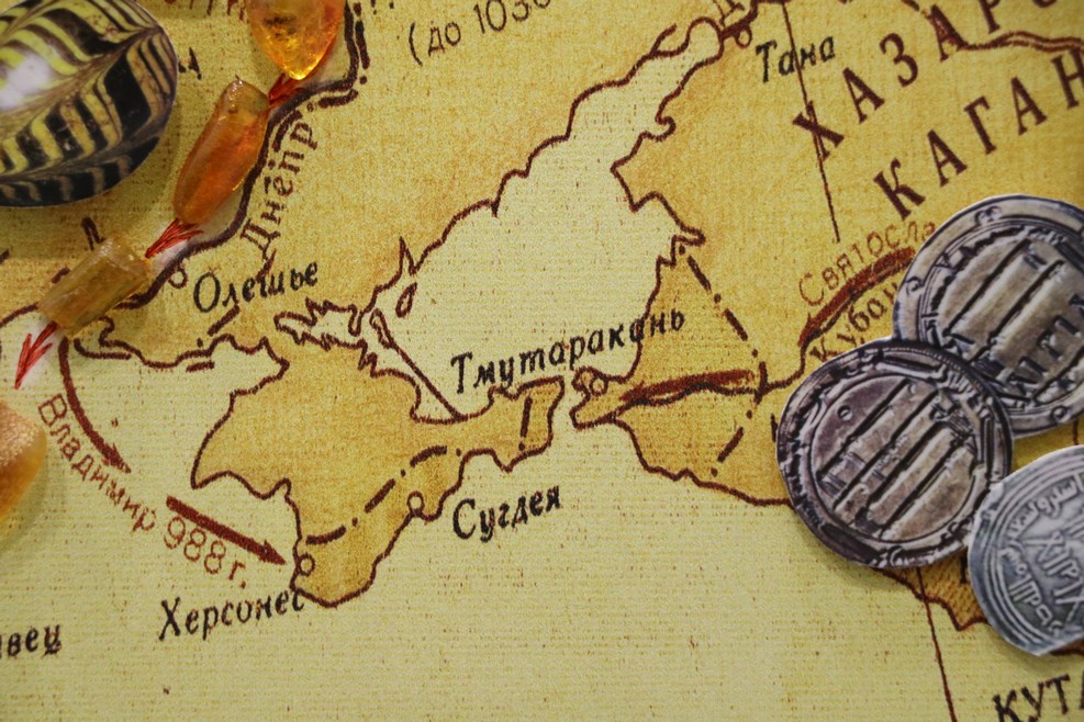 Карта, рассказывающая о старом пути передвижения янтаря. Тут я узнал, что Тмутаракань это не придуманный народным фольклором населенный пункт, а реально раньше существующее поселение: