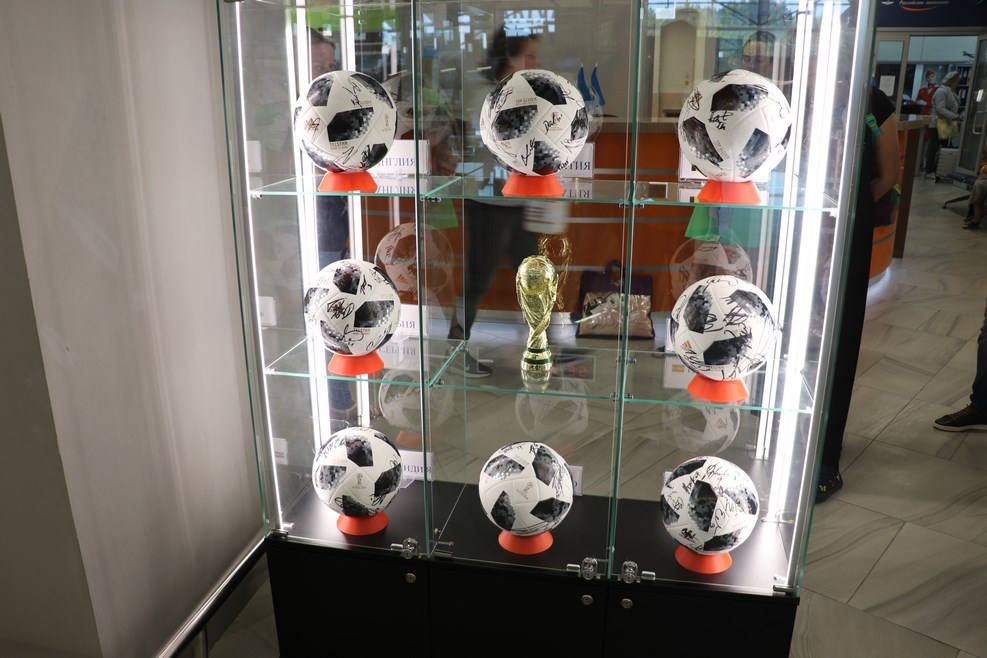 Там же витрина с мячиками. В этом году Калининград принимал чемпионат мира по футболу: