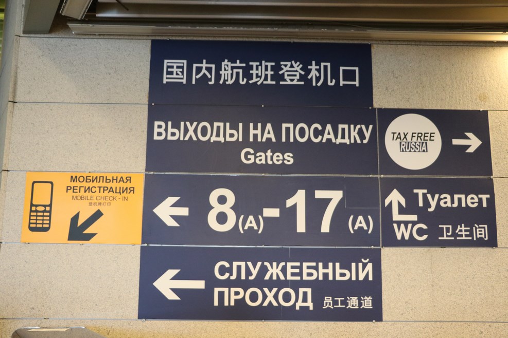 Вылетали из Внуково. Это аэропорт стал моим любимым за свои компактные размеры. На всех направляющих табличках аэропорта появились китайские иероглифы: