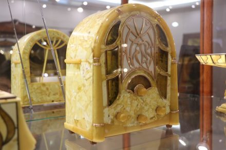 На входе в музей демонстрация шлифовки янтаря: