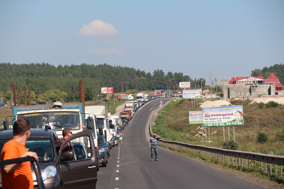 До границы мы добирались девять с половиной часов. По пути постояли в небольшой пробке под Курском, где сейчас ремонтируют мост: