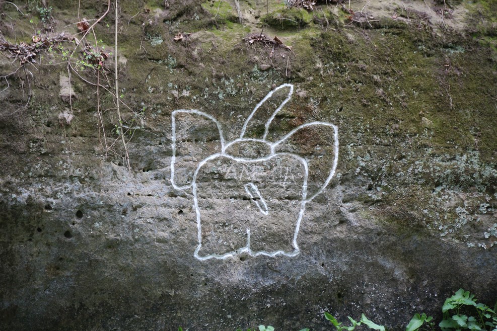 Кто-то каллиграфическим почерком выбил свое имя на стене: