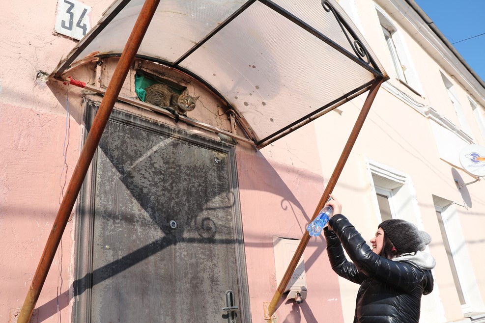 В городе множество кошек. Некоторые на контакт идут неохотно: