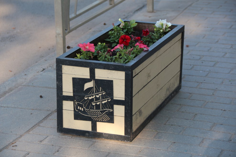 Картина на здании около причала. В цветах российского флага, как я понимаю, изображена Родина-мать. Щелкните по фото, что бы рассмотреть мать поближе: