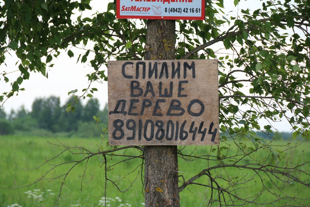 Кстати о деревьях. Вдоль дороги в области можно часто увидеть такие вот объявления. Край очень лесной: